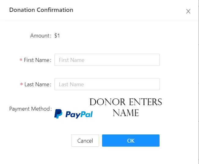 💳 Donors click a date, make a payment via credit/debit card or PayPal